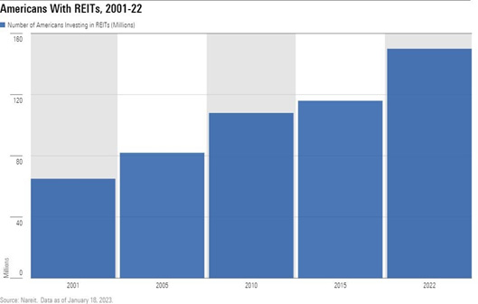Given a REIT’s advantages, it’s not surprising that almost 50% of all US households owned at least one REIT stock by 2022.